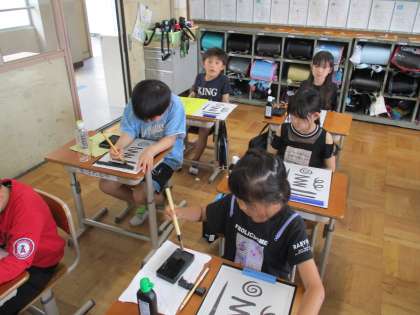 3年生になり、「毛筆」の学習が始まりました。道具の名前、準備の仕方などを確認した後、丁寧にいろいろな線を書きました。