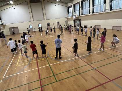 本日、石田小学校と2回目の交流を行いました。海の家で行うレクレーションを通して仲を深めました。