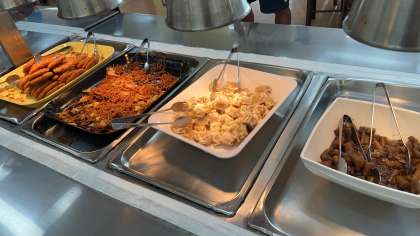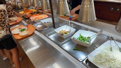 夕食の時間です。ビュッフェ形式で自分のお皿に取っていきます。