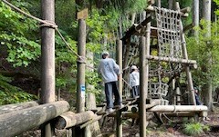 午後からの活動は、楽しみにしていた冒険の森、アスレチックです。ダイナミックなアスレチックを堪能しています。