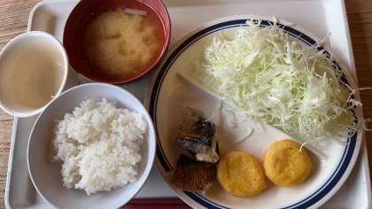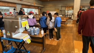 朝食の様子です。朝食は主食のご飯かパンか?おかずはどれがいいかな?友達と相談しながら選んでいました。今日はこれから、登山です。しっかり食べて頂上を目指しましょう。
