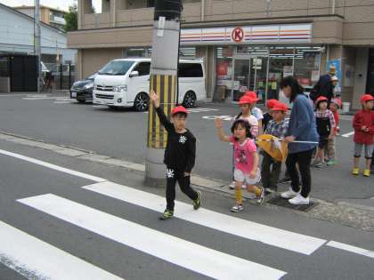道路の歩き方や横断歩道の渡り方を教えてもらい,