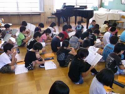 3年生の音楽の学習は,普段はクラスごとに行いますが、今日(9日)は,2クラス合同で授業をしました。