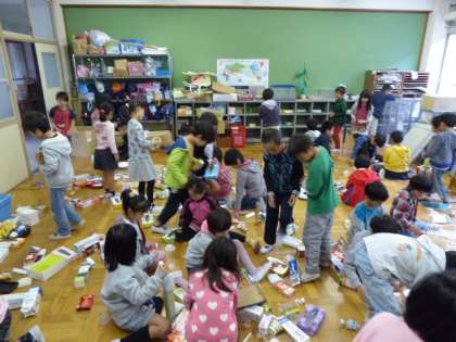 今回は,さまざまな材料から思い浮かぶ遊びを考え,自由に遊びました。