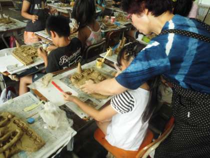 粘土をこねたり,削ったりしながら,作品を作っています。