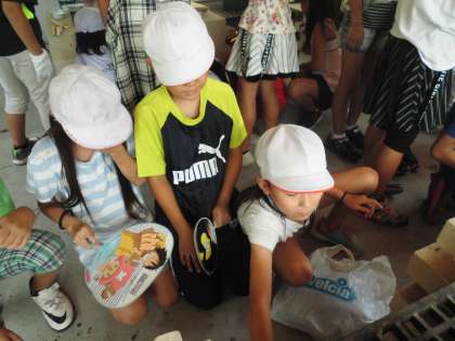 あとは,火を弱めてかたずけをして,みんなでおにぎりを作りました。