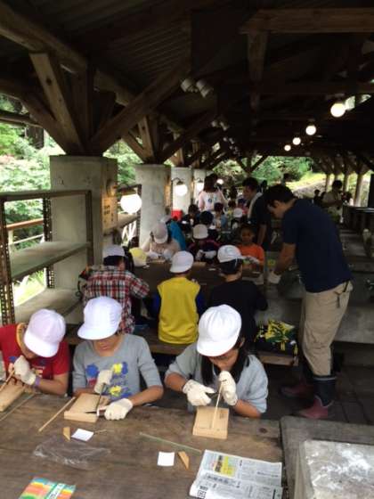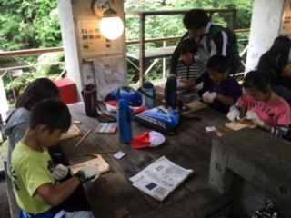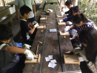 お弁当を食べた後の最初の活動は竹ばし作りです。山の家で過ごす4日間はずっとこのおはしで食事をするので、みんな真剣です。