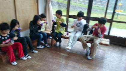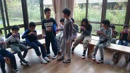 館内ラリー,紙飛行機ゴルフが終わったあとに,葡萄のゼリーをいただきました。