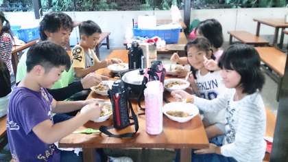 みんなで、力を合わせた美味しいカレーが、出来上がりました。いただきます❗と大きな声が、あちらこちらで聞こえました。「おいしい!」と叫んでいました。