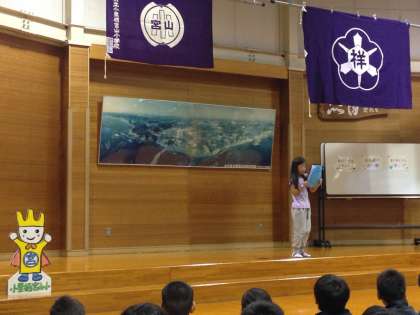 しっかり聞ける子どもたちを「みややマン」も見守っていてくれていました。