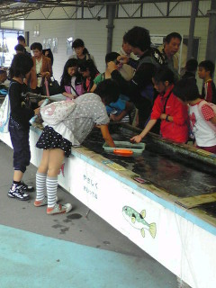 子どもたちは、触れる魚達に夢中です。大きなセイウチにもタッチしました。