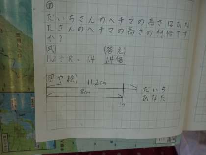 一方のヘチマの丈がもう一方のヘチマの丈の