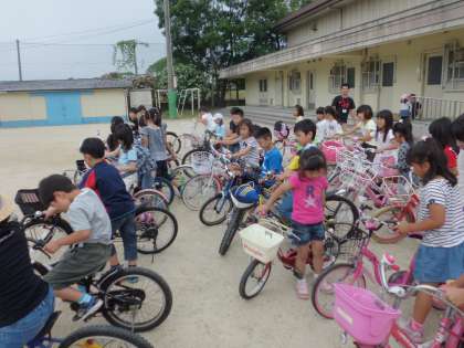 自転車の安全な乗り方を練習しました。
