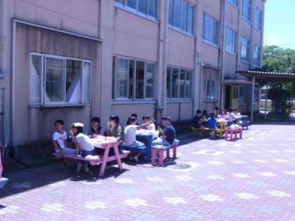 天気も良く(少し暑いぐらい)いつもと違う雰囲気の中,楽しく給食を食べました。