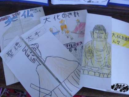 聖徳太子や奈良の大仏・日本に仏教を伝えた鑑真などを中心に調べて書いていました。