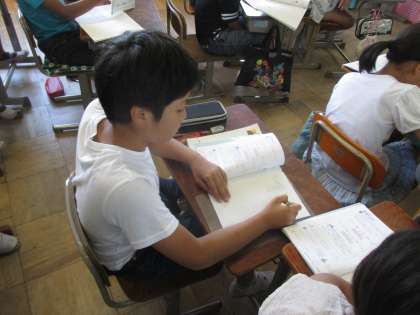友だちと考えを出し合った後,皆で今日の学習を振り返ります。