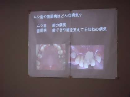3年生は歯科衛生士の先生から歯磨きの指導を受けていました。