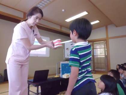 歯科衛生士の先生に歯みがきのしかたについて教えていただきました。