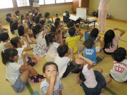 どうしたら虫歯になるのかみんな真剣に聞いていました。