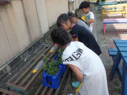 どんどん育っているあさがおをみつけたよカードに書きました。