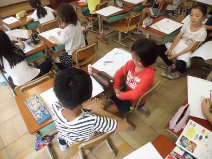 今まででうれしいと感じたことを発表し合い,その時の状況を思い浮かべ,絵にするという学習でした。