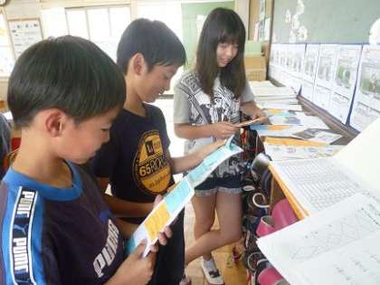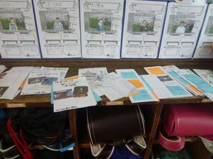 パンフレットを見た一言感想を付けてもらい,その付箋を嬉しそうに読んでいます。