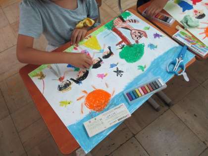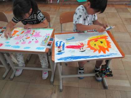 ほんわかとした絵になり,子どもたちの絵がますます可愛らしく仕上がりました。