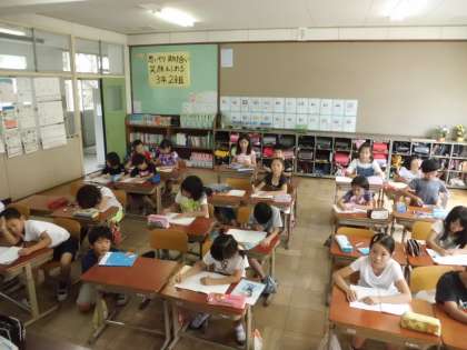 今日の算数の授業でも繰り返し問題を解き,みんなで答え合わせをしました。
