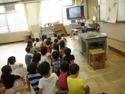 もうすぐ七夕なので,七夕の由来について,1組の先生に読み聞かせをしてもらいました。