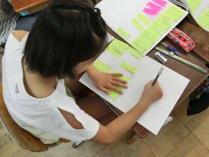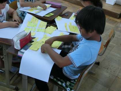 今日はみさきの家での活動を思い出し,どれを4年生に報告するか考えました。