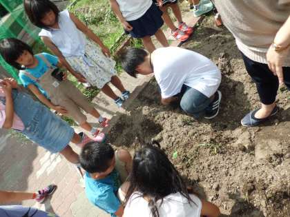 5時間目に少し時間をとり,かぼちゃを花壇に植え替えました。