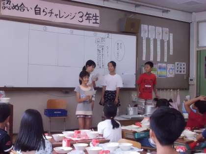 今日の給食の時間に5年生がやって来て,歯科検診の結果が良かった子が表彰されれました!