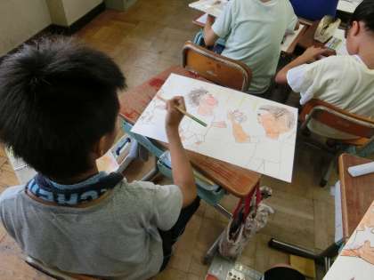 下書きを描いた人から,絵の具で着色しました。