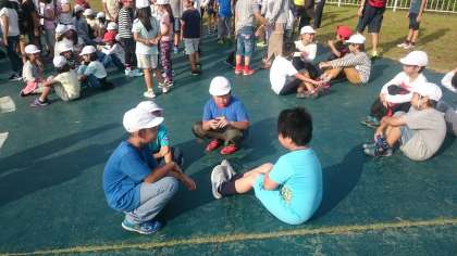 「そーれ集まれゲーム」で自己紹介をしています。
