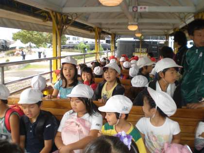 蒸気機関車館では、SLに乗りました。「ポーッ!!」という汽笛の大きな音にびっくりしつつ、SLの力強い走りを体験しました。他にも黒くて大きいSLがたくさん展示してありました。運転席に乗ったりもできました