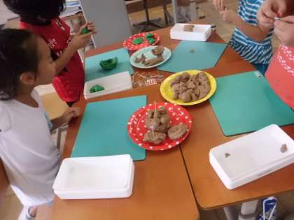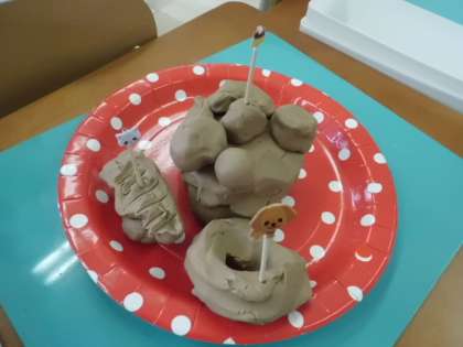 みんながわくわくするようなごちそうを考えて,粘土で作りました。