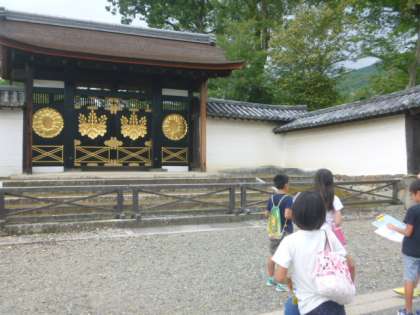 国宝や重要文化財を見た子どもたちは,広い境内をグループで調べながら楽しく学習していました。