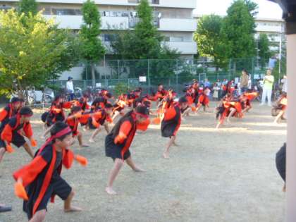 夏休み前からコツコツと練習を重ねて,はじめて法被や鉢巻きをまとって踊りました。