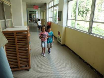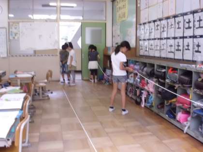 教室の縦と横の長さや,廊下の端から端まで歩いてどのくらいなのか,一人ひとり計測しました!