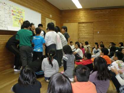 一日目のテーマが「友情」だったので,夜の活動は,班や友達同士で協力し,楽しめる取組を行いました。