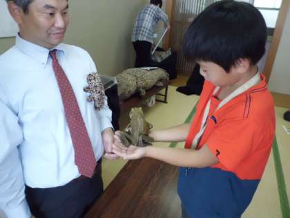 授業の終わりには,実際に連れてきていただいたカエルを触らせてもらいました。