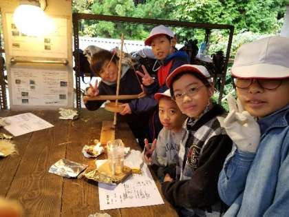 おこした火で今度は,かまどでまきに火をつけてカレー作りをします。
