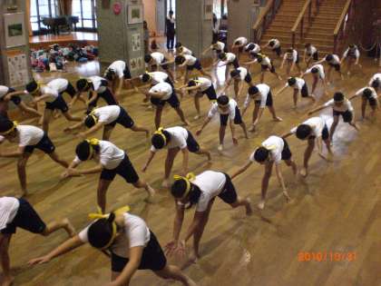 5日間のお礼の気持ちを込めて,みんなで一生懸命に踊りました。