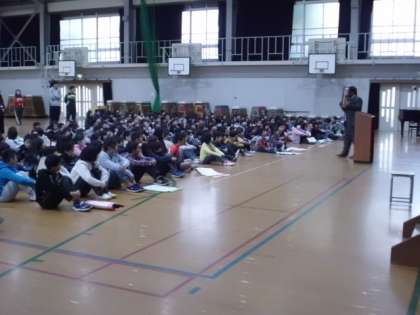 人権朝会で校長先生の話を聞きました。