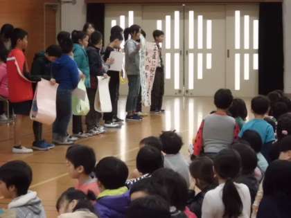校長先生の話の後,各クラスの代表が人権スローガンを発表しました。