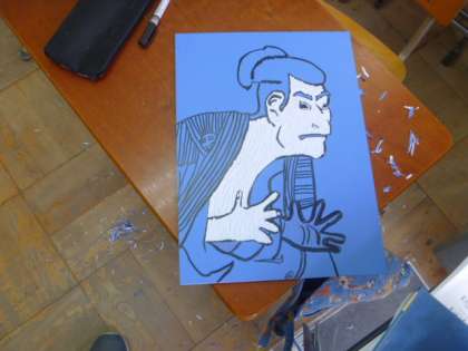 社会科で町人の文化「浮世絵」を学び,様々な浮世絵を一人一人良く見て描いています。