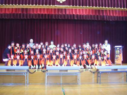この写真は,学習発表会が終わって,6年生みんなで撮りました。