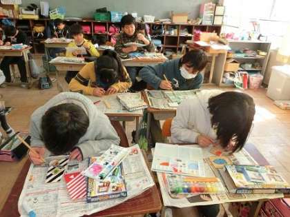 子どもたちは,卒業の思い出となる「時計付き写真立て」を作っています。