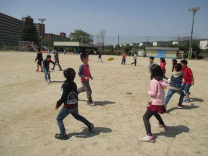 今日は,あそび係さんの提案で,クラス全員でドッチビーをしました!