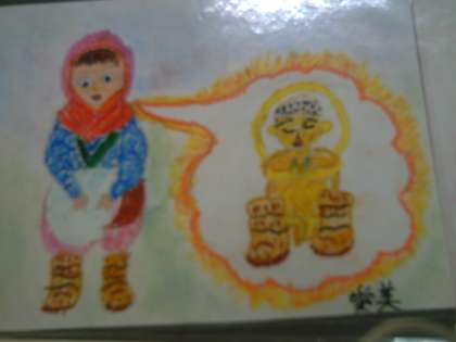 国語の学習で「わらぐつの中の神様」を読みました。子どもたちは初めて読んだ感想に「おみつさんと大工さんは 人のために一生けんめい働こうとするところが にているね。」「心をこめてつくった物には 神様がやどっている。大切に使うと良いことが起こりそうだ。」などと書いていました。そして、心にのこった場面を絵に描いてみました。季節は寒くなりましたが、子どもたちの絵を見ていると心があたたまります!!